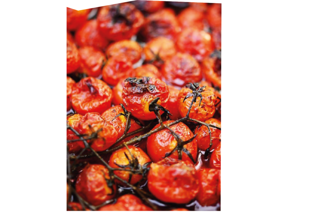 Pomodoro pelato, Parmigiano Reggiano 24 mesi in cottura, Bufala D.O.P. a crudo, pomodorini droga rossa, crema di basilico